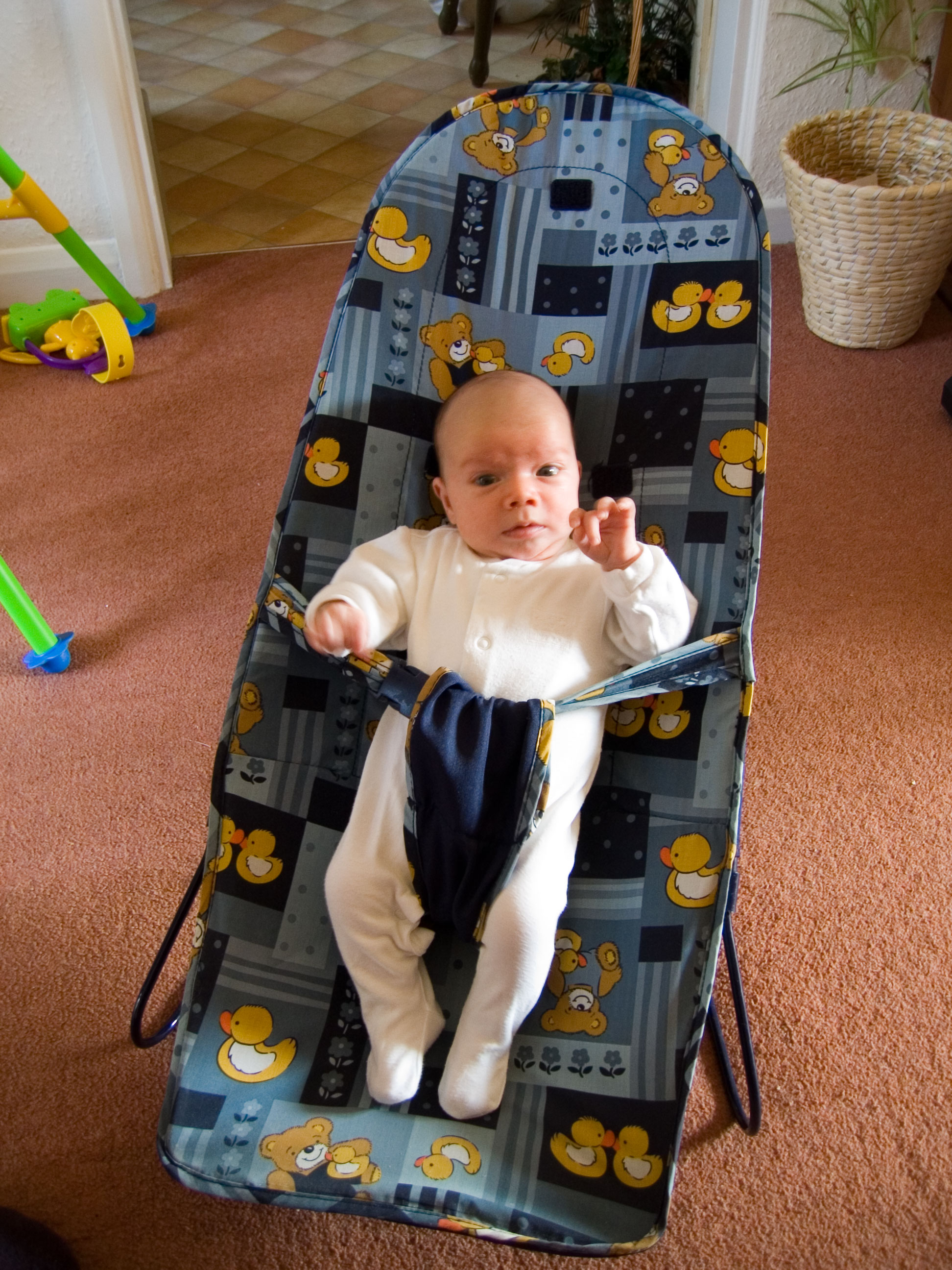 Jessica happy in her cot